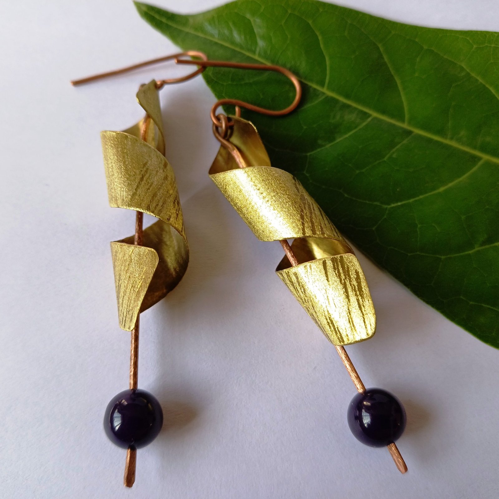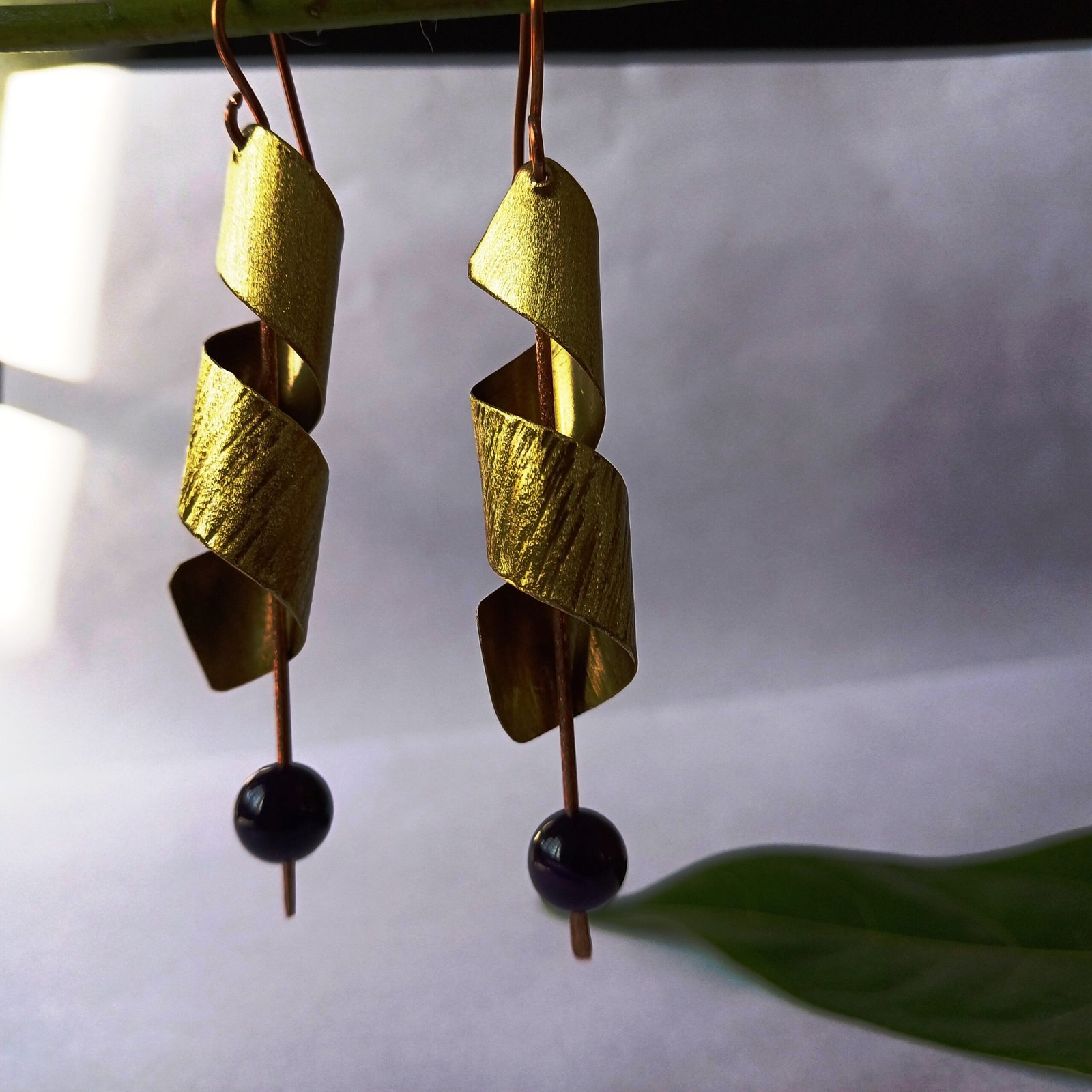 Introducing the Black Stone Helix Earrings—a stunning fusion of hand-textured brass spirals and natural black gemstone beads. The twisted brass design creates a dynamic, fluid look, while the deep black stone at the base adds an elegant contrast, symbolizing strength and mystery.